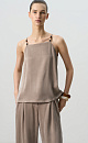 Cupra top. The model has a loose silhouette, with a straight, shallow neckline, and thin straps decorated with beads.
