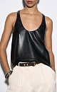 Textured eco leather top. The model has a loose silhouette with thin straps and a deep neckline.