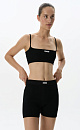 Knitted short top made of viscose in a sporty style. The model is made in a ribbed pattern with thin straps. Branded jacquard on the chest. You can complement the look with shorts in the same style.