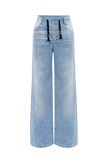 Denim top with slits in grunge style. The model has a fitted silhouette and a zipper on the back. You can complete the look with a matching skirt.