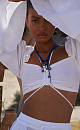 Lightweight cotton crop top with long sleeves and a drawstring around the neck.