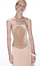 Velvet corset with lacing on the back. The model has a fitted silhouette with vertical darts. The product is lined.