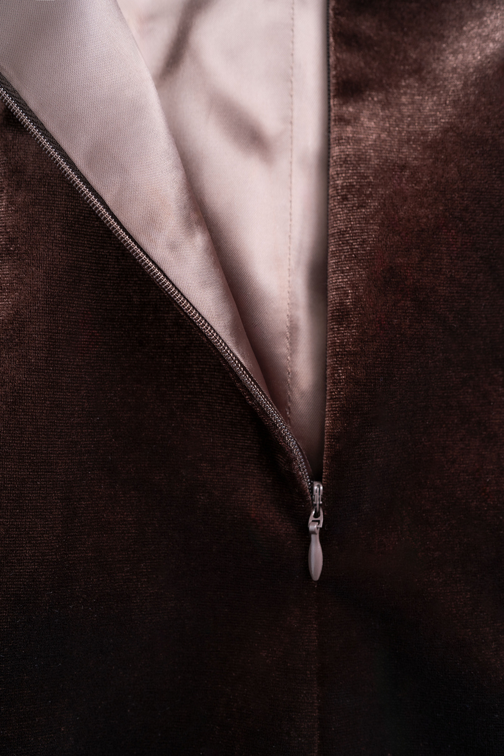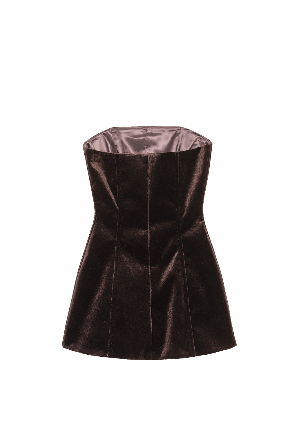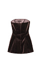 An elongated velvet corset. A fitted silhouette model with a hidden zipper at the back. The product is lined.
