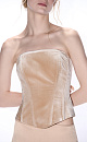Velvet corset with lacing on the back. The model has a fitted silhouette with vertical darts. The product is lined.