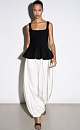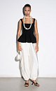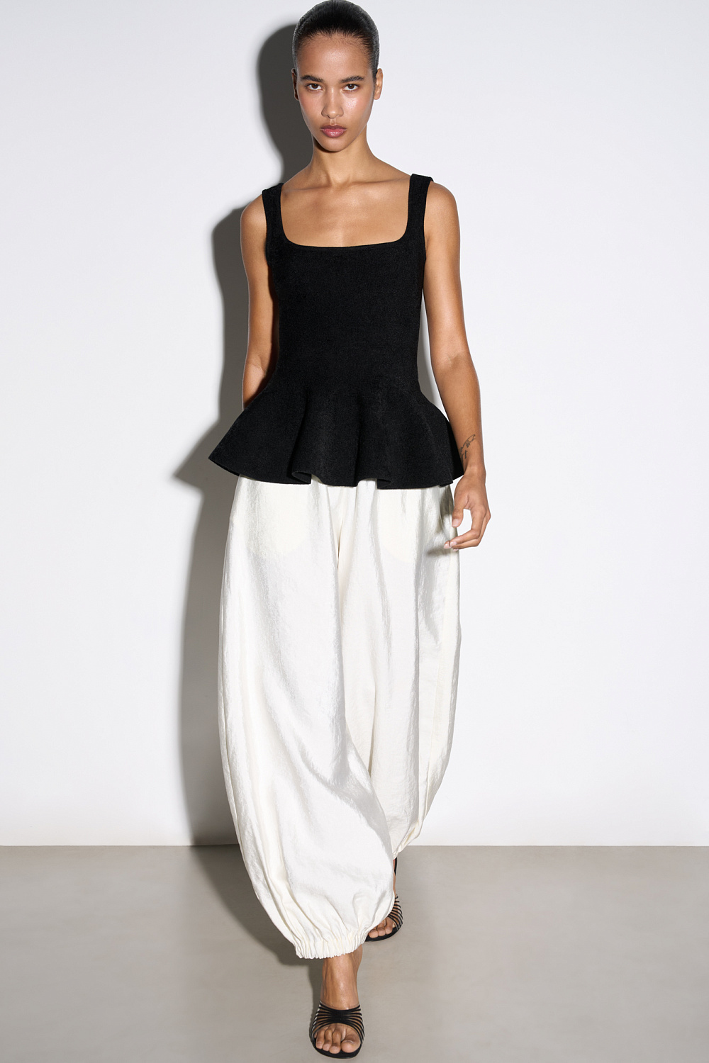 Knitted corset made of thick viscose. Model with wide straps and peplum. Zip fastening at the back. The product is unlined.