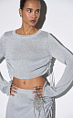 Metallic thread crop top, round neckline and adjustable drawstrings on the sides. Ribbed edges.