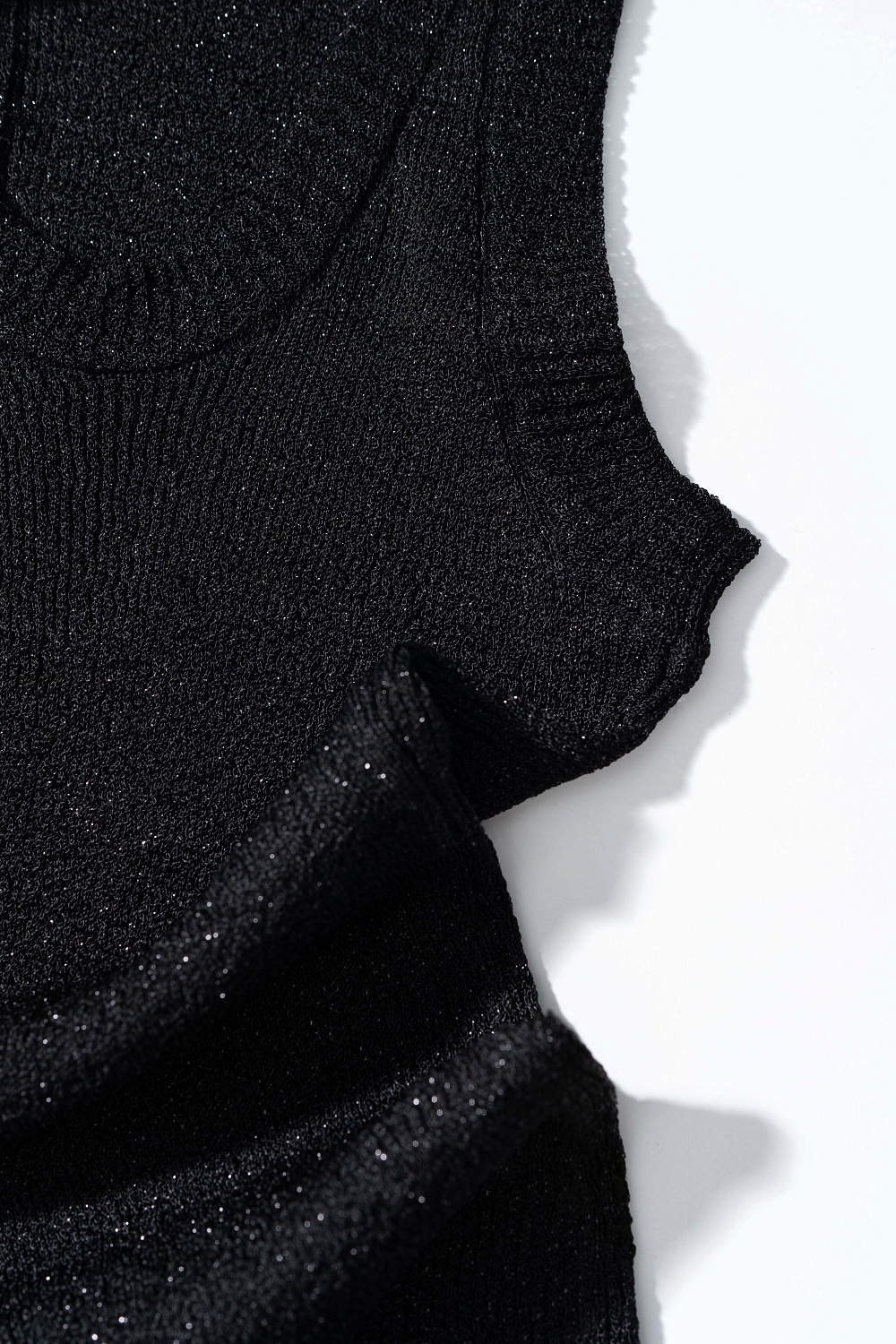Knitted top made of viscose with lurex. Model with a U-shaped neckline and wide straps.