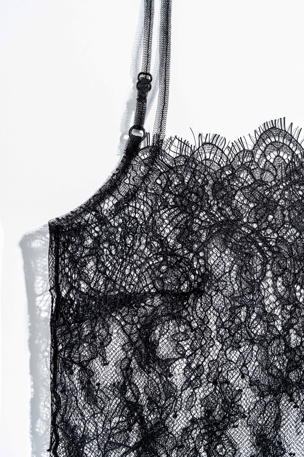 Top made of fine lace. Model with thin adjustable straps. The product is made without lining.