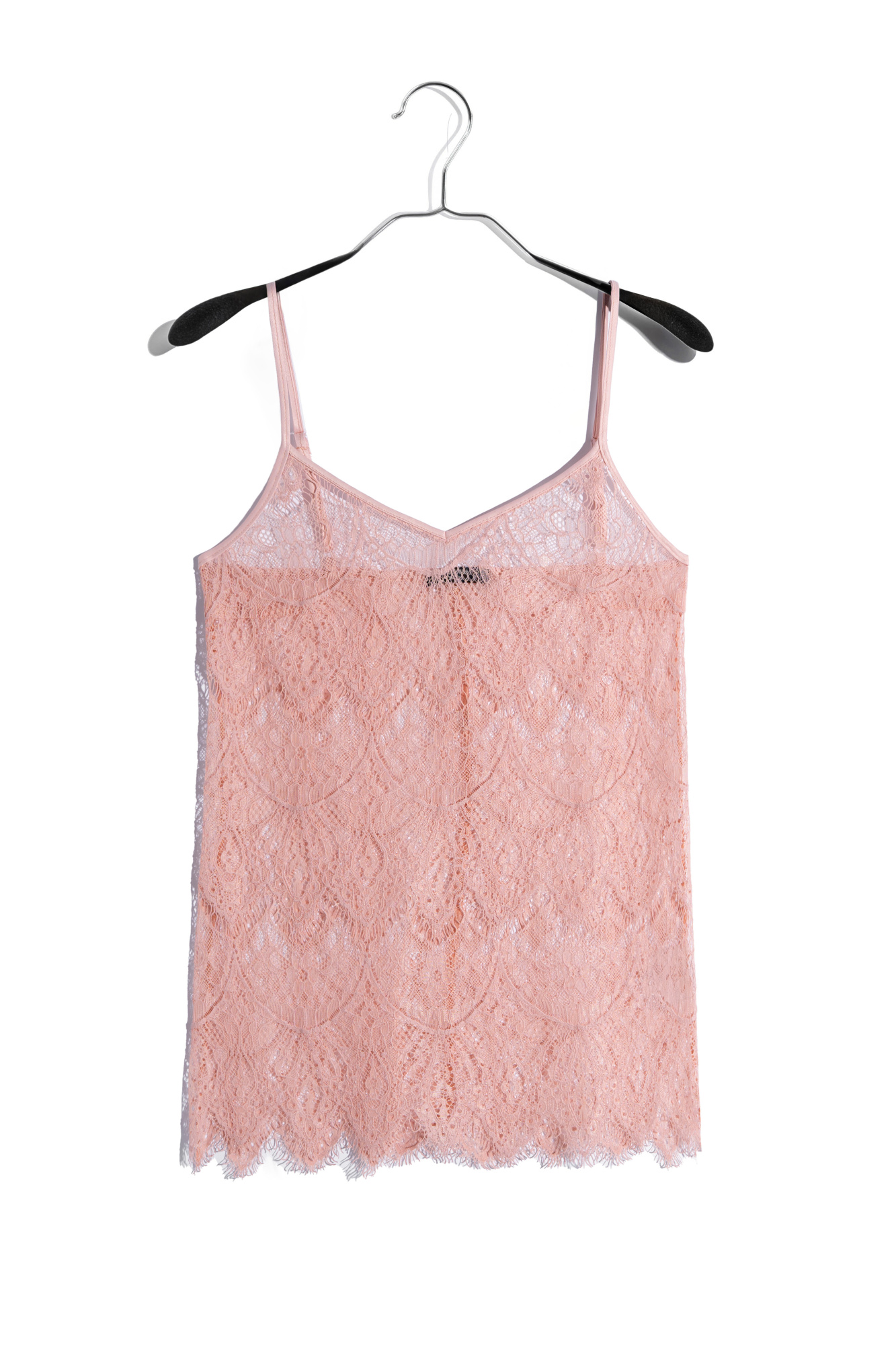 Top made of fine lace. Model with a triangular bodice, with adjustable straps. The product is made without lining.