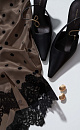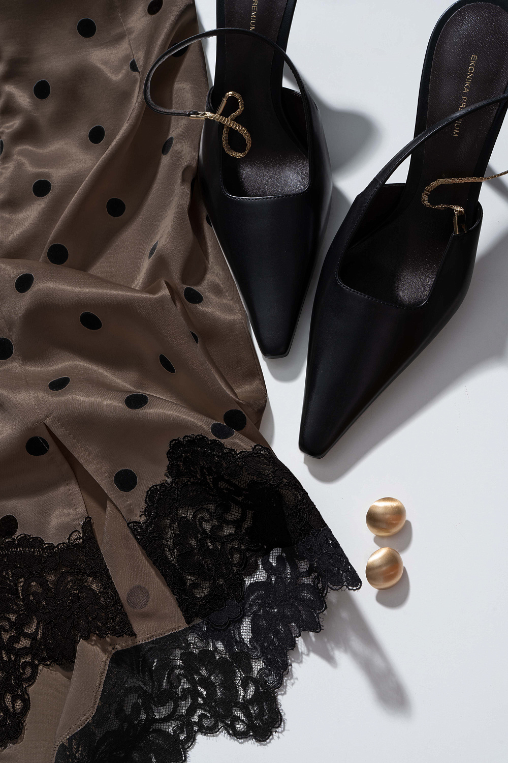 Satin top with polka dots. Model with thin straps. The product is decorated with thin lace.
