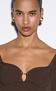 Ribbed viscose knit crop top. Fitted silhouette with plunging neckline and gold decorative pin. Pairs perfectly with a knitted maxi skirt from the same collection.
