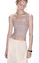 Short viscose knitted corset with luster. The model has a fitted silhouette, a square neckline and wide straps. It is fastened with a zipper at the back.