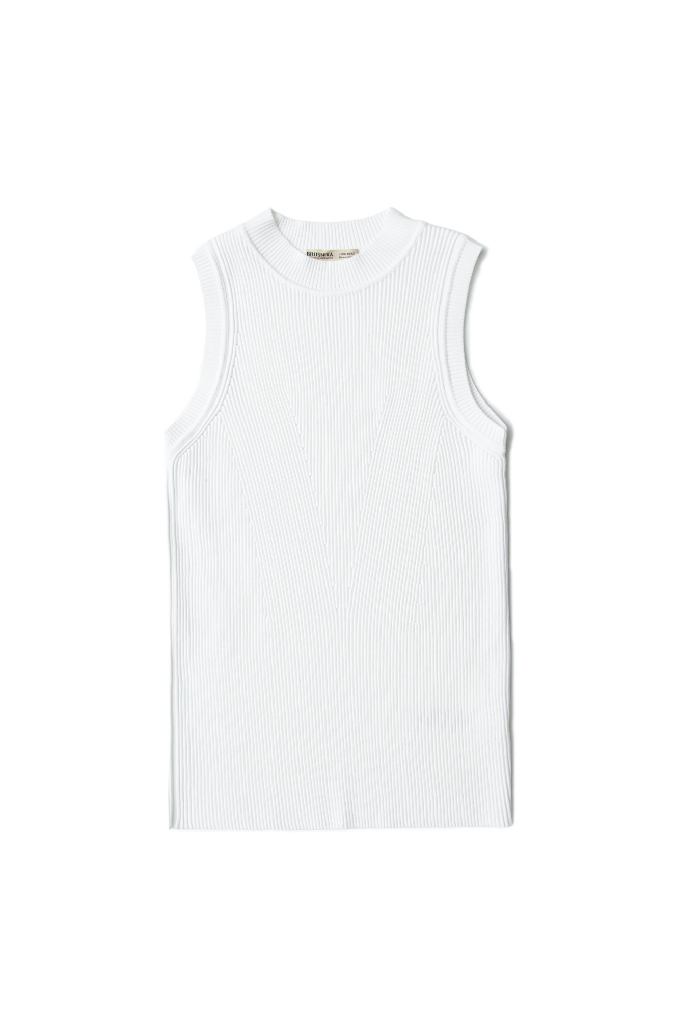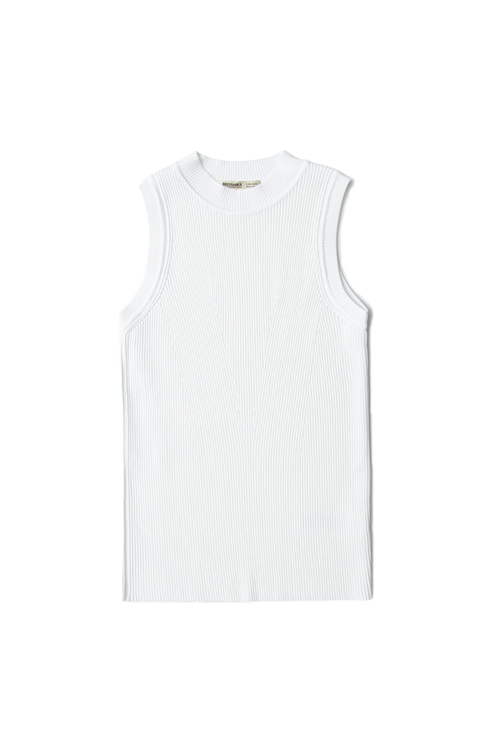 Fitted rib knit top pairs perfectly with jackets and cardigans as a first layer, but is also great as a stand-alone piece for an office look.