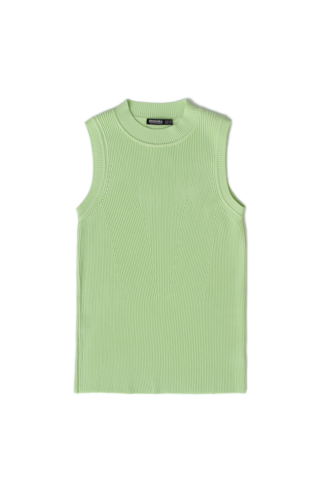 Fitted rib knit top pairs perfectly with jackets and cardigans as a first layer, but is also great as a stand-alone piece for an office look.