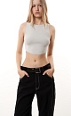 Polyviscose knitted crop top with an uneven hem and ribbed edges.