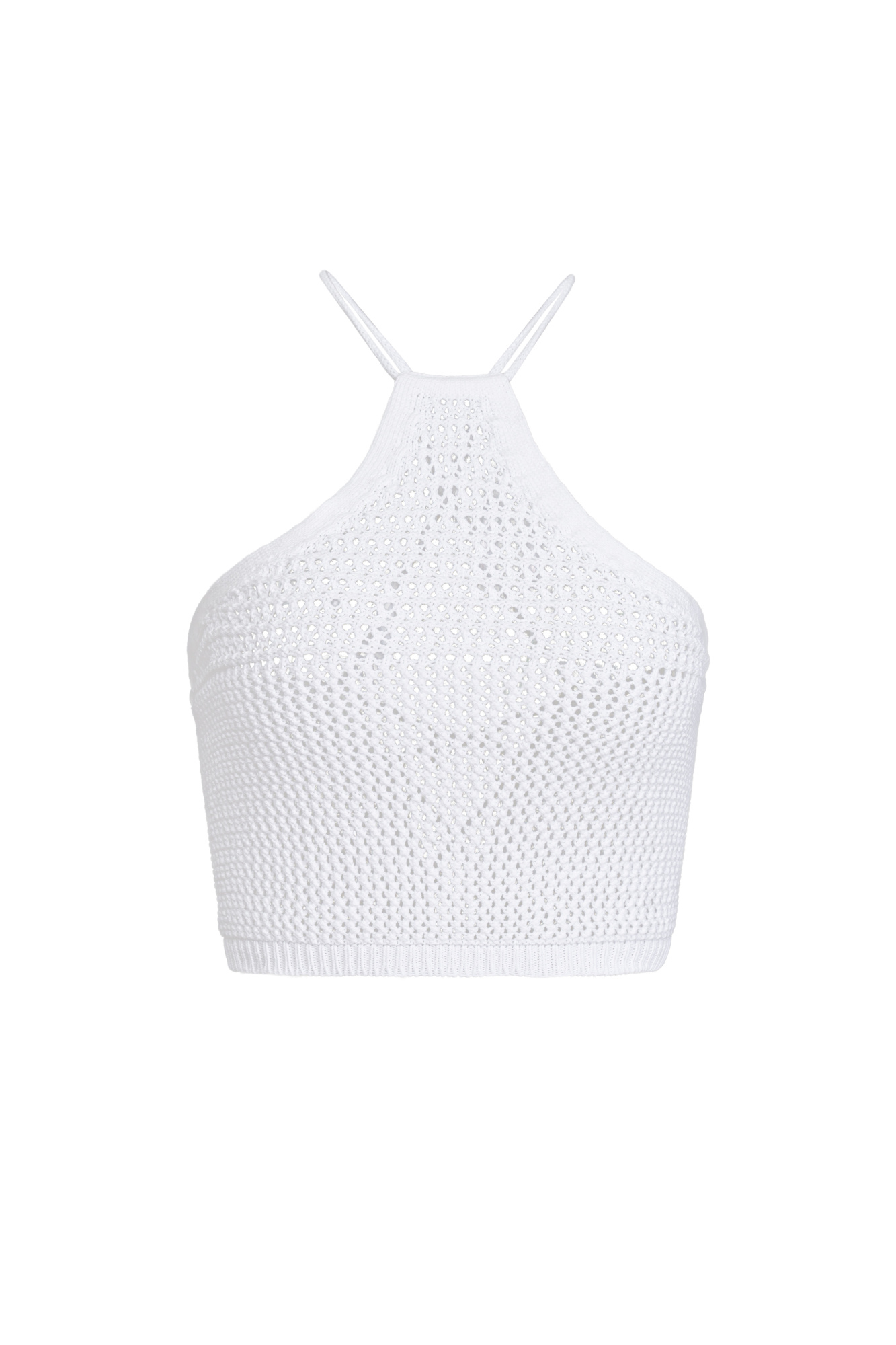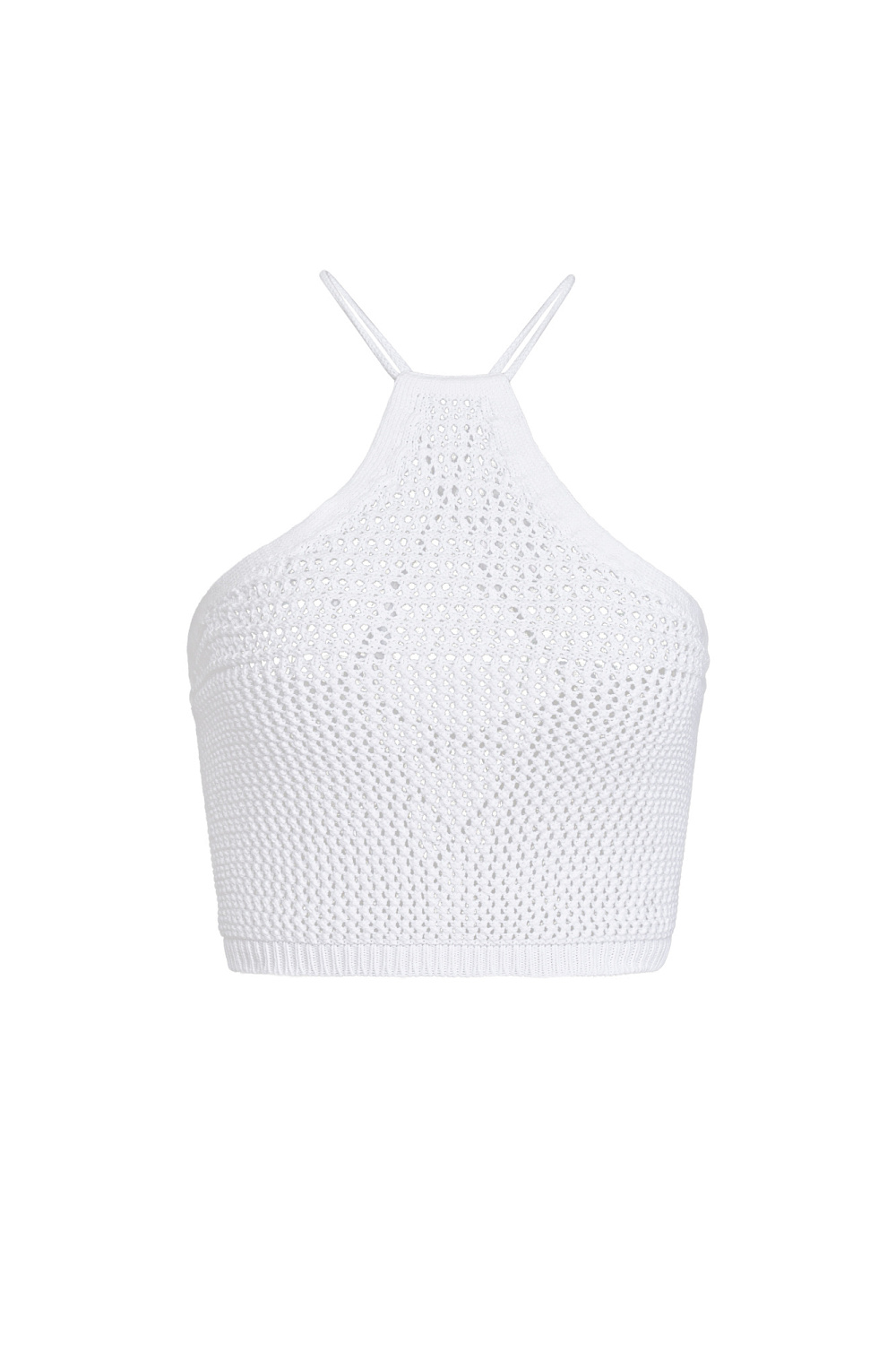 Sleeveless 100% cotton knitted top with thin straps and lace-up back.