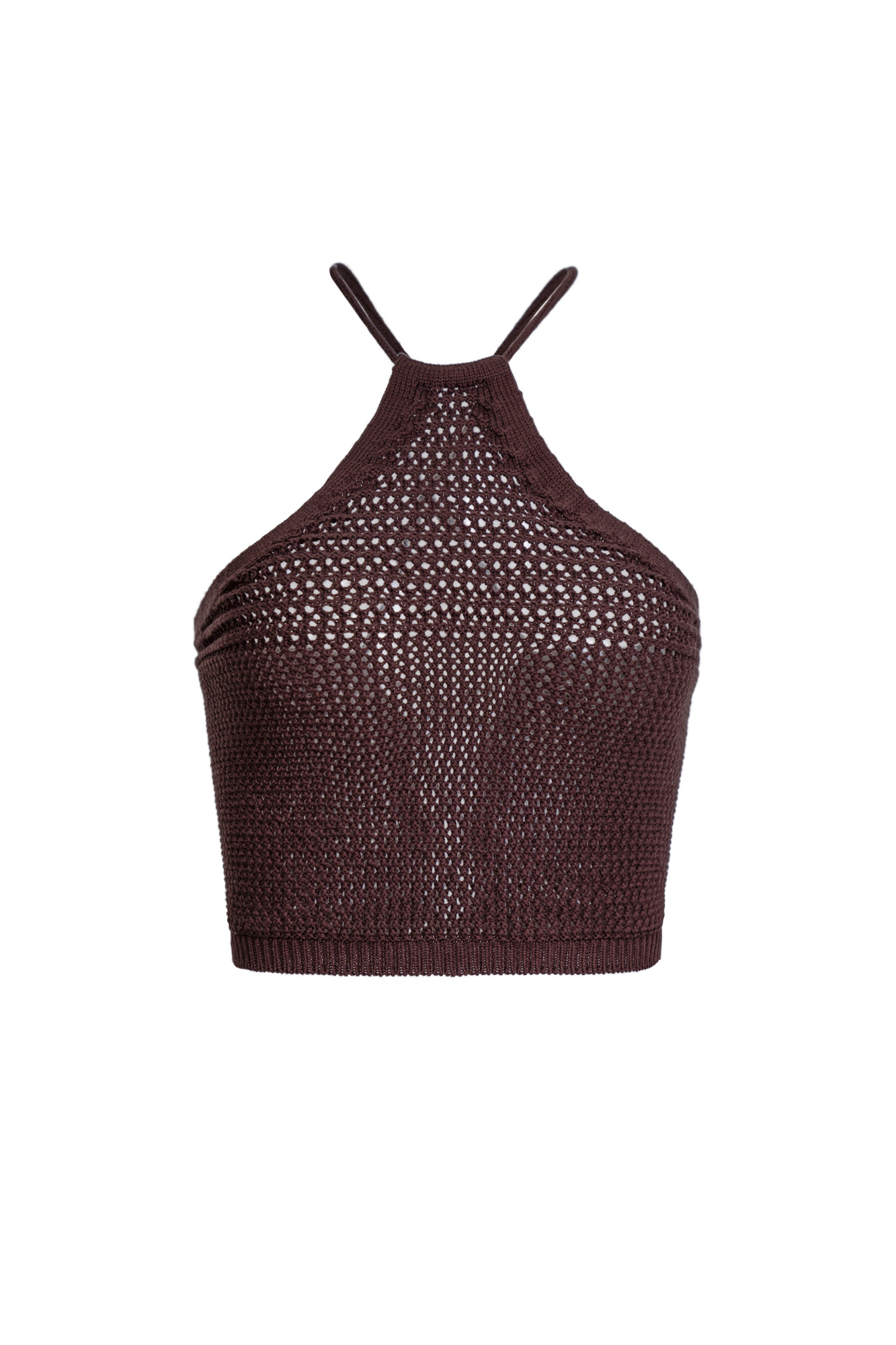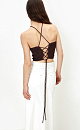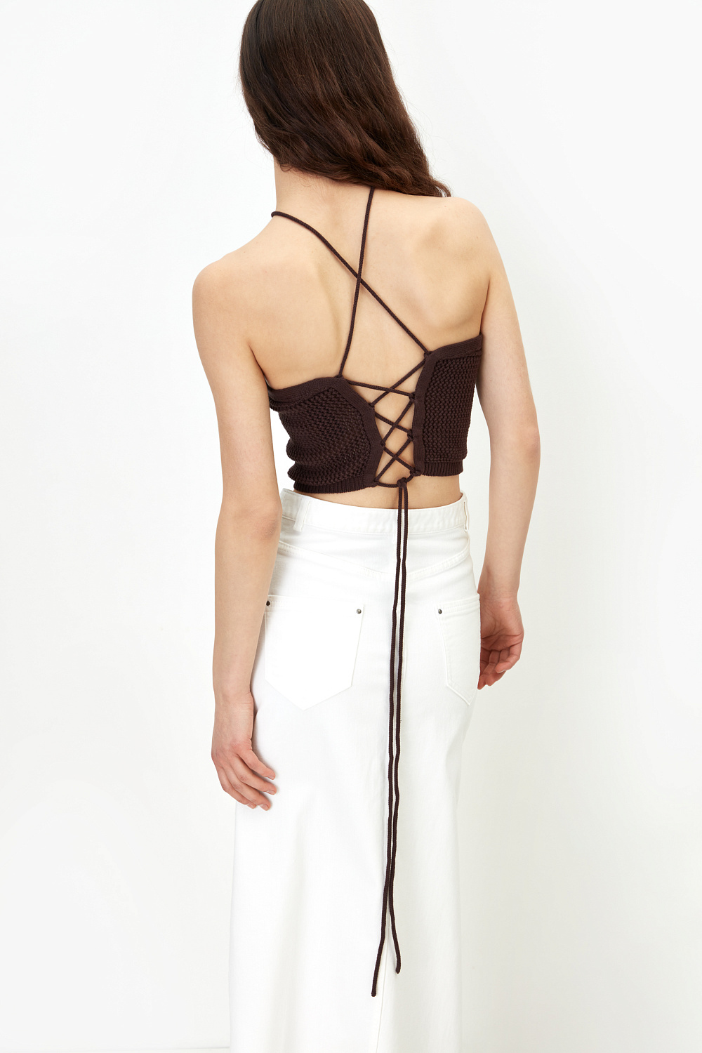 Sleeveless 100% cotton knitted top with thin straps and lace-up back.