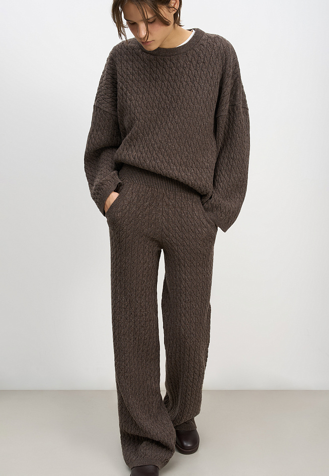 Trousers with cables made of 100% extrafine merino wool