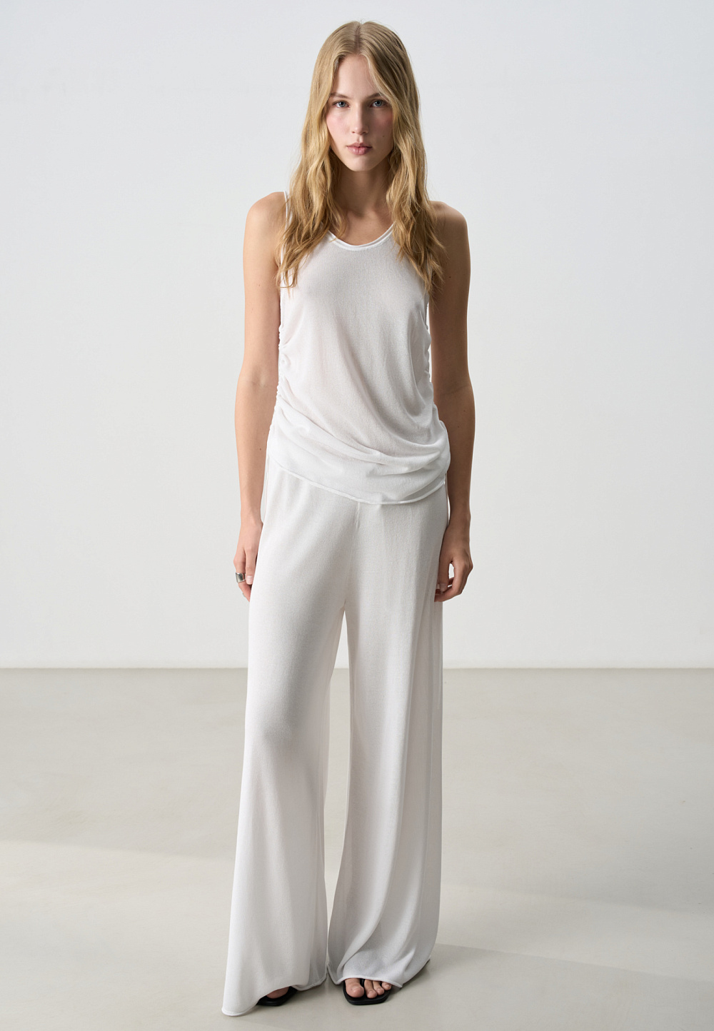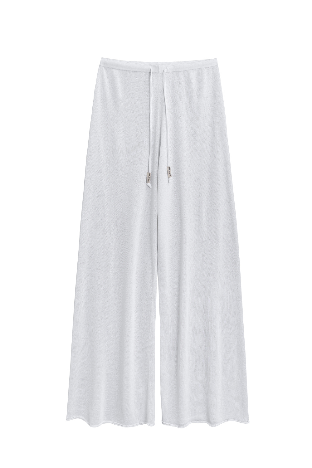 Knitted palazzo trousers in lightweight viscose. Loose fit model with a drawstring belt.