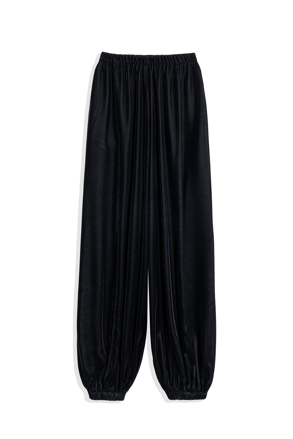 Wide-leg joggers in velvet fabric. Loose silhouette model with elastic waistband.