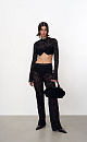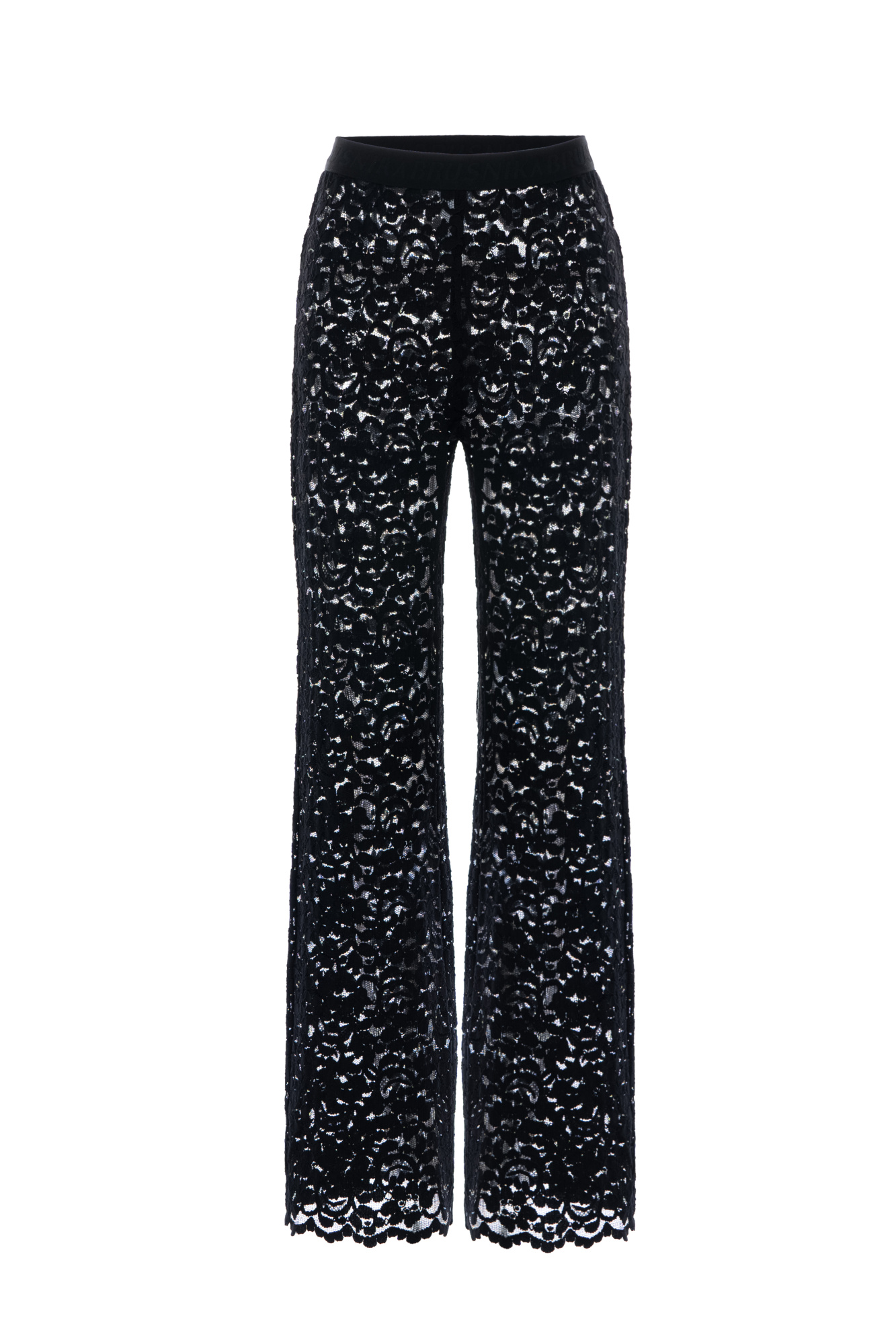 Semi-sheer flared trousers with a signature elasticated waistband and zip at the back. Made from Italian lace. You can complete the look with a matching lace crop top.