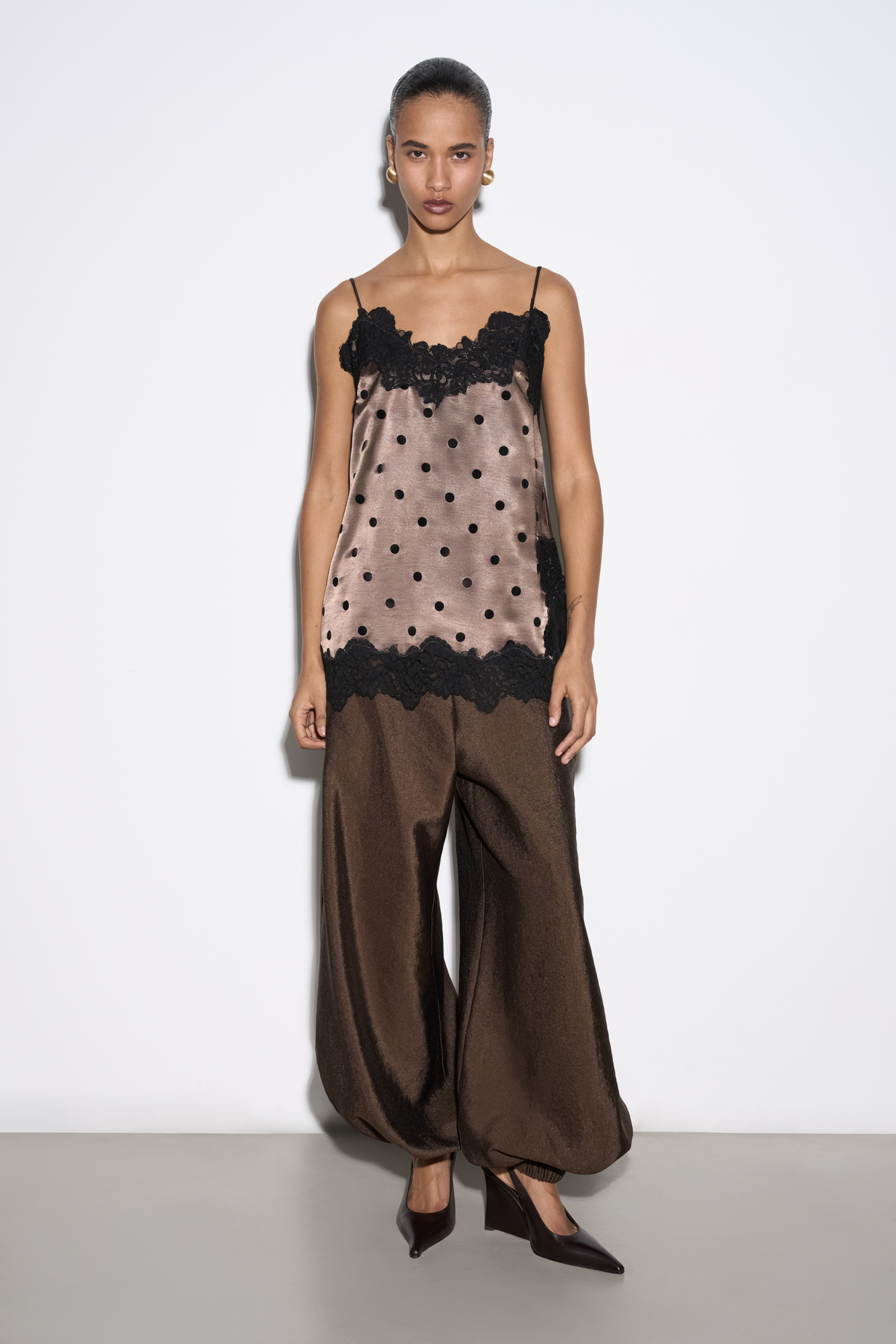 Aladdin trousers in textured viscose. Loose silhouette model with elasticated waistband and cuffs.