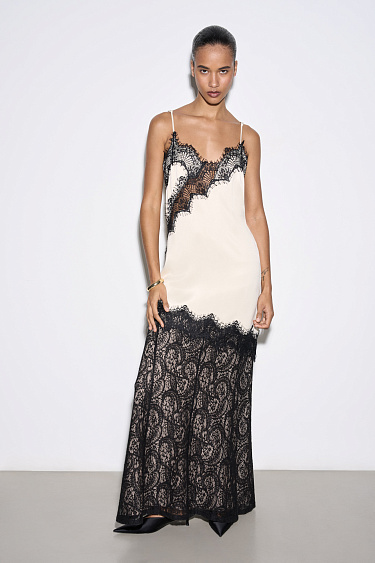 Satin trousers made of 100% viscose. Straight fit model with belt loops, pockets and zip fastening, trouser hook and button.
