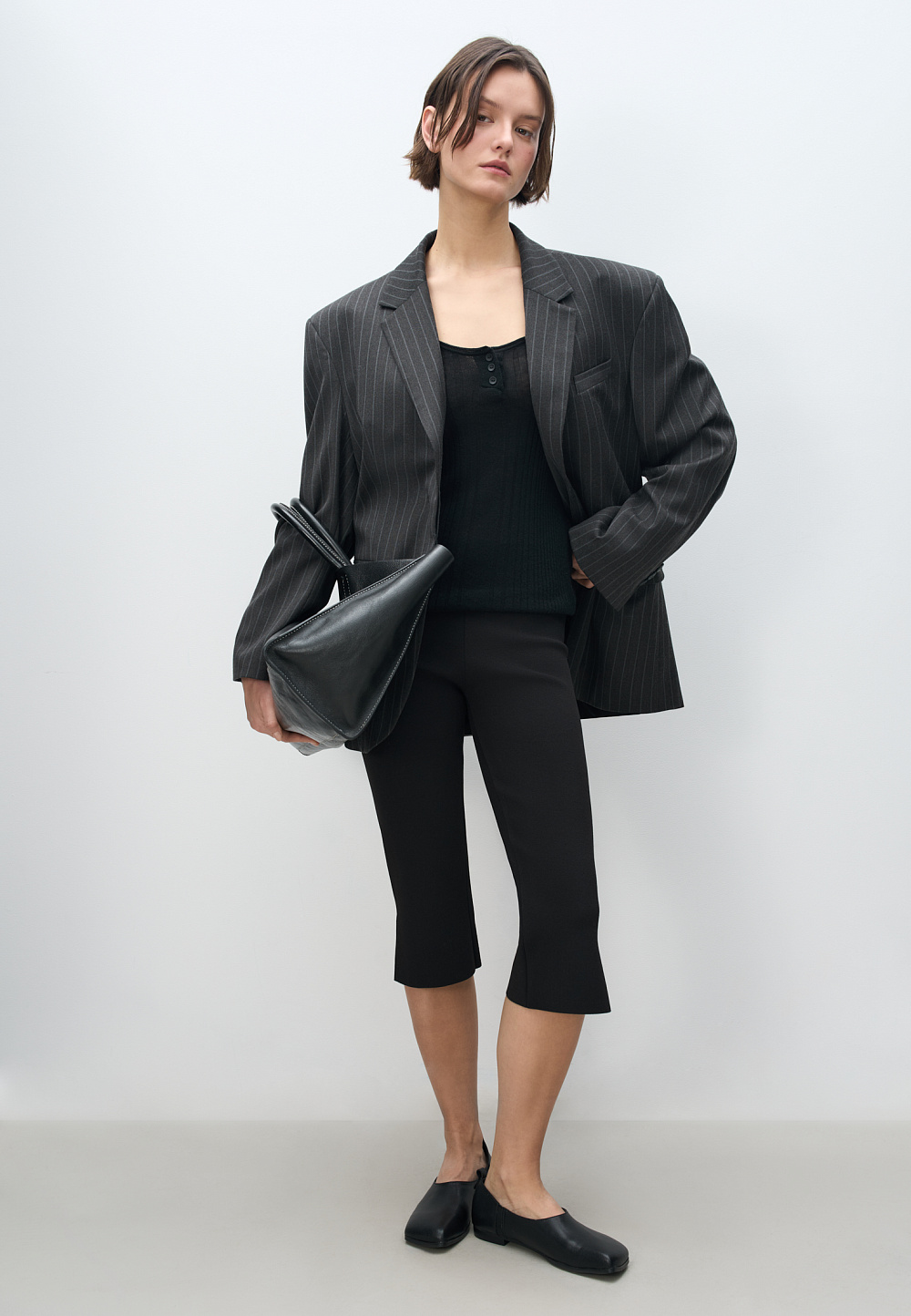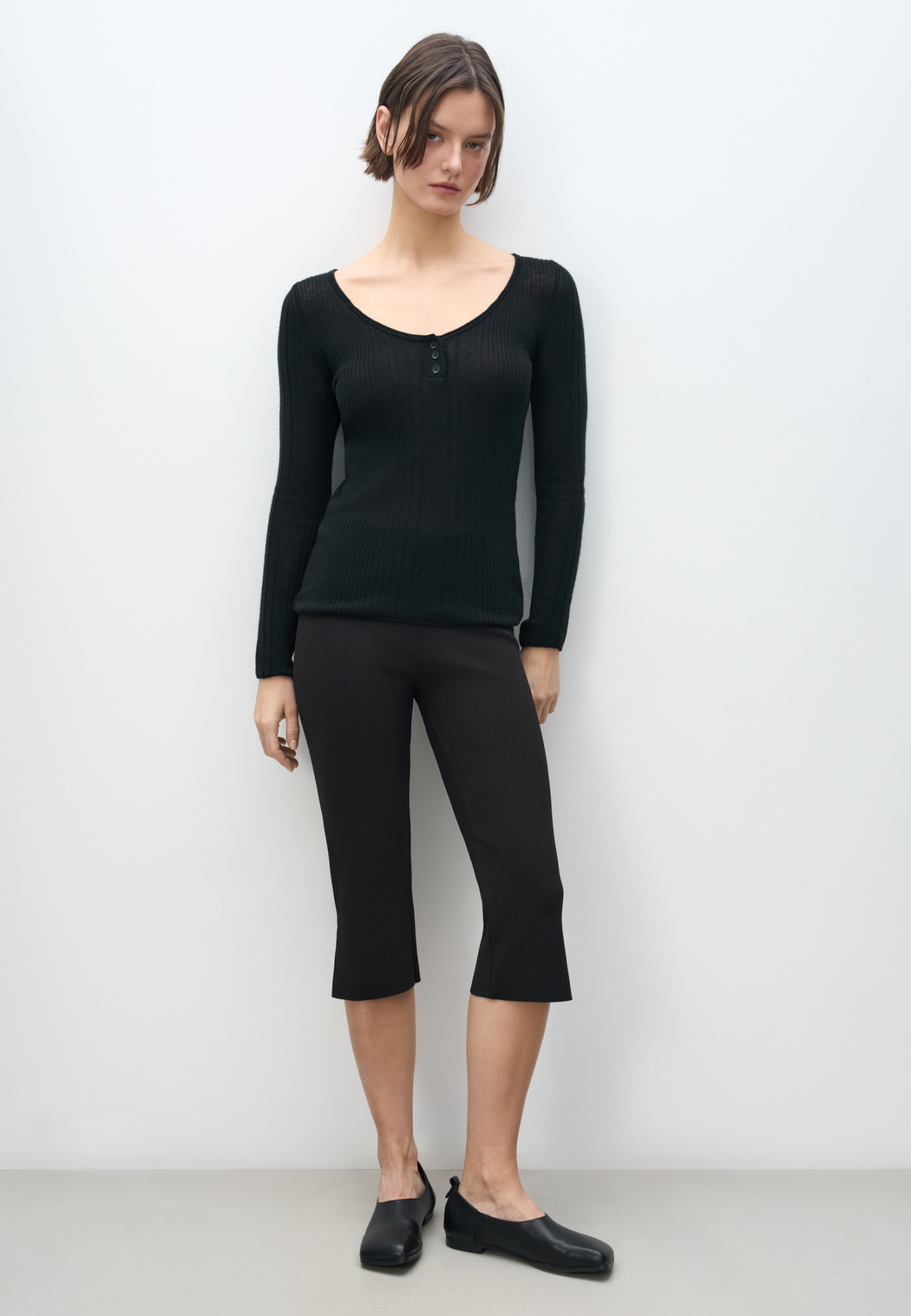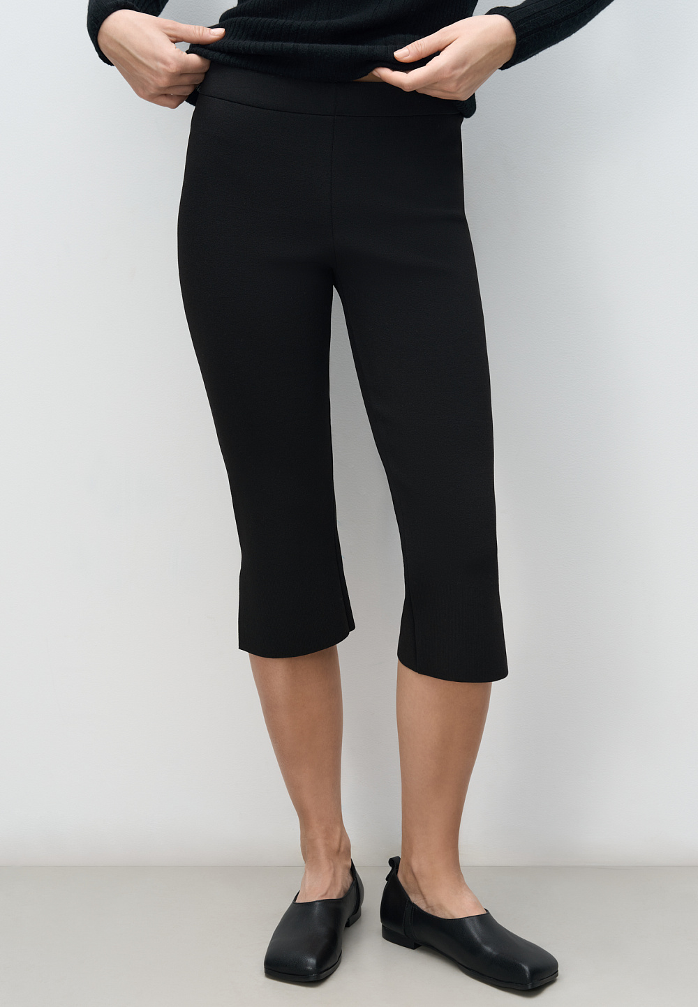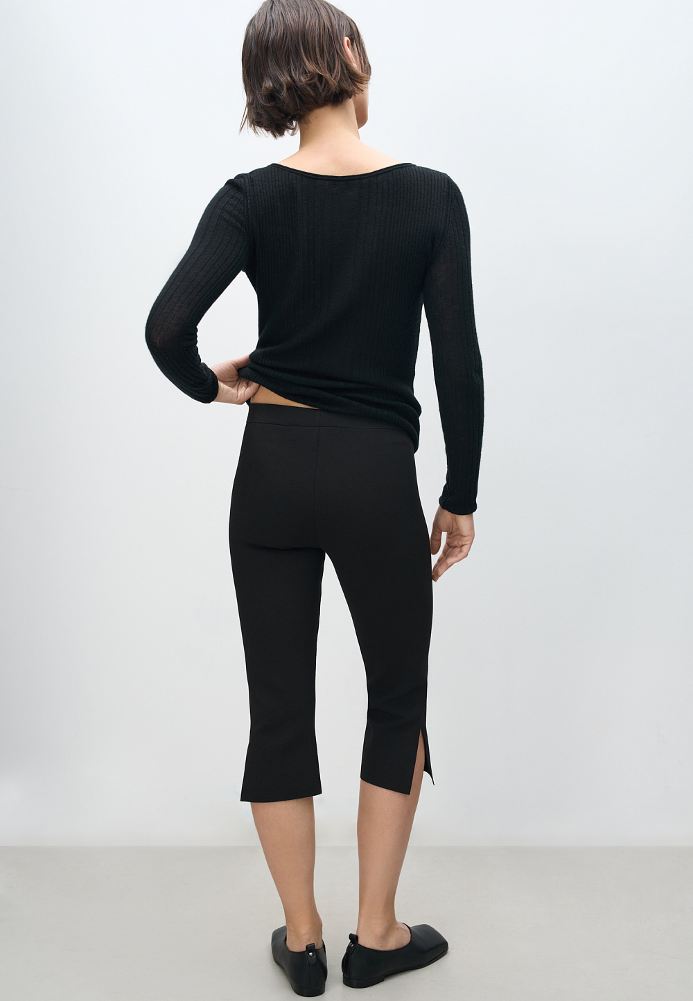 Knitted viscose capris. Model with low slits on the side.
