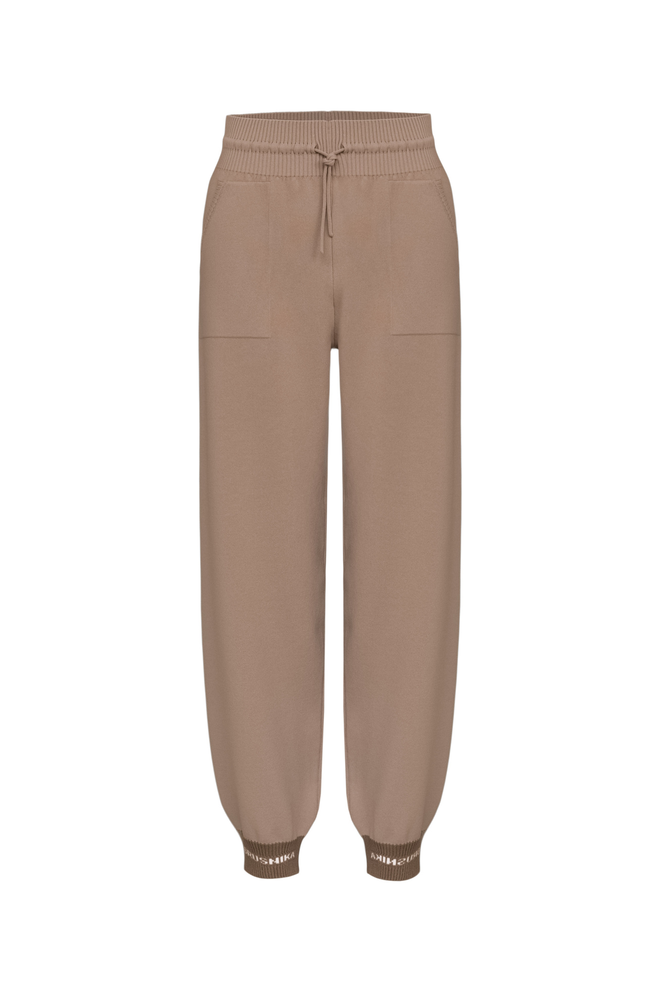 Viscose sweatpants with pockets. Model with a wide elastic waistband with a drawstring and elasticated cuffs.