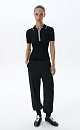 Knitted trousers made of thick viscose in a sporty style. Adjustable drawstring waistband. Side pockets. Elastic cuffs.