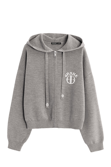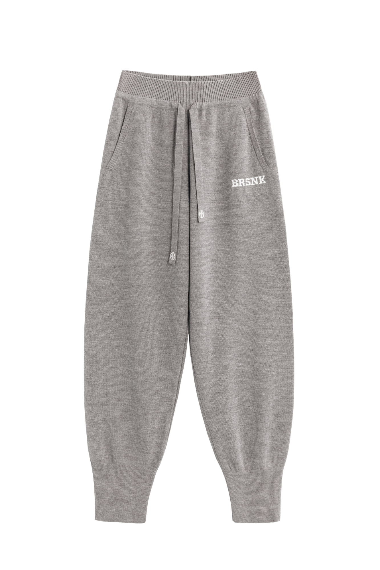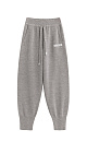 Knitted trousers made of wool with the addition of acrylic. The model is made in a sporty style, with a wide elastic waistband with a drawstring, side pockets and wide cuffs with elastic. The product is decorated with branded jacquard on the leg.