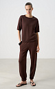 Knitted jogging trousers made of cotton with added viscose. The model is made in a sporty style, with a wide elastic waistband with a drawstring, side pockets and wide cuffs with elastic.