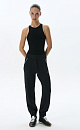 Knitted trousers made of viscose with the addition of elastane. The model is made in a sporty style, with a wide elastic waistband with a drawstring, side pockets and wide cuffs with elastic.