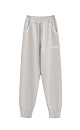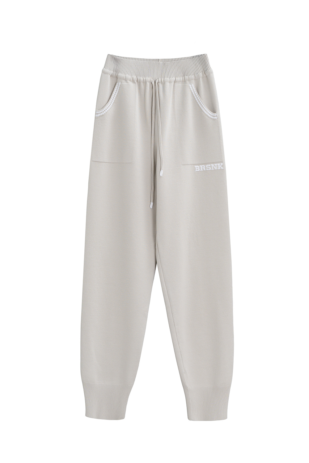 Knitted trousers made of viscose with the addition of elastane. The model is made in a sporty style, with a wide elastic waistband with a drawstring, side pockets and wide cuffs with elastic.