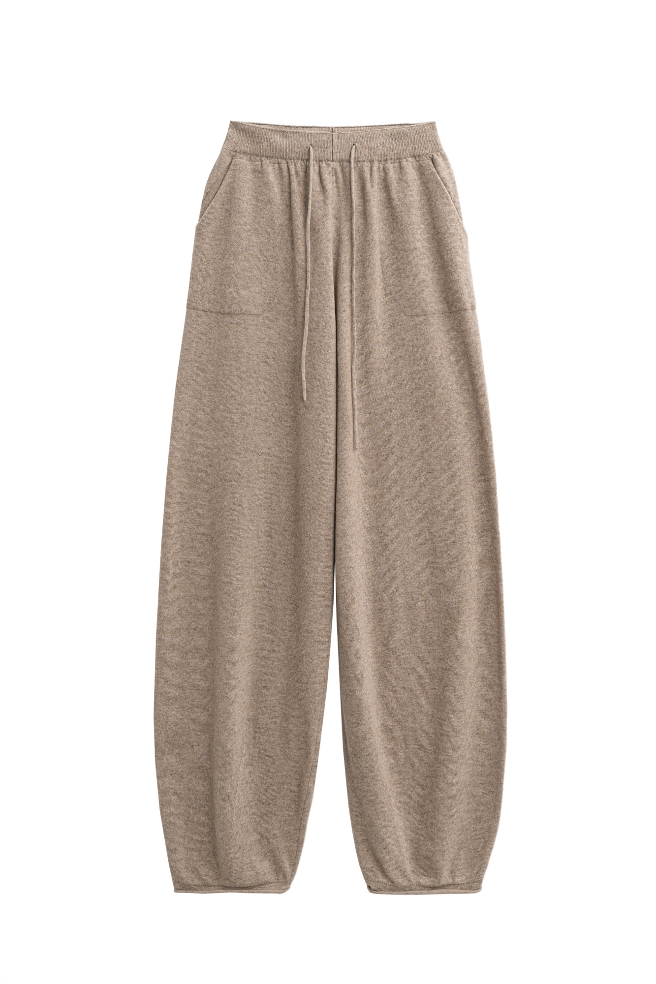 Knitted banana trousers made of cashmere and wool. Model with an elastic waist, complemented by a drawstring, large patch pockets and rolled cuffs.