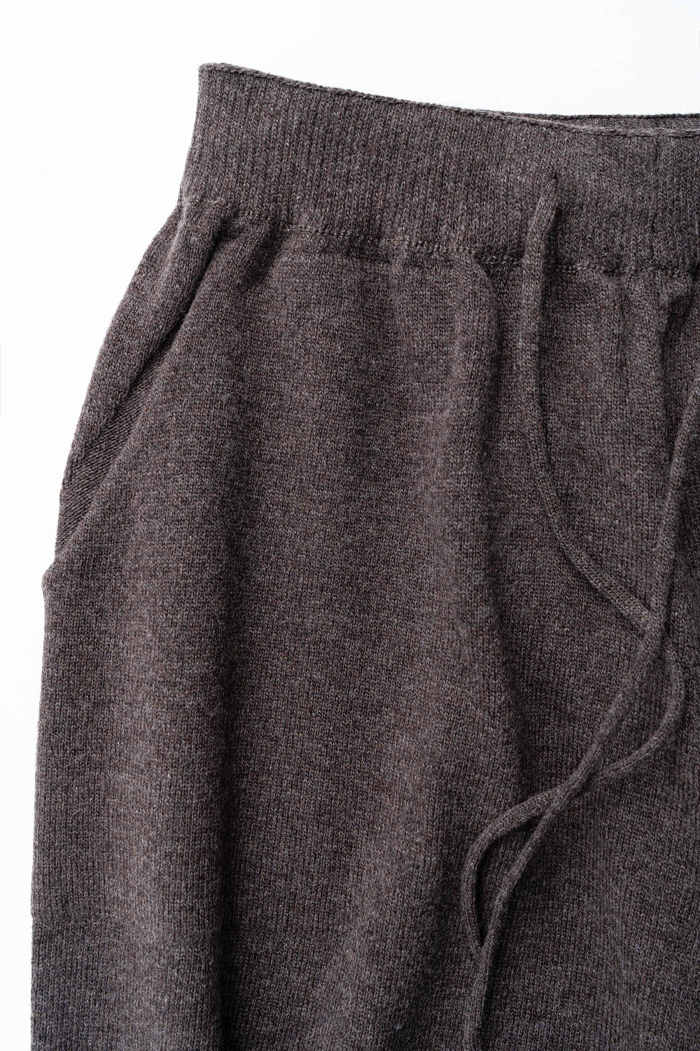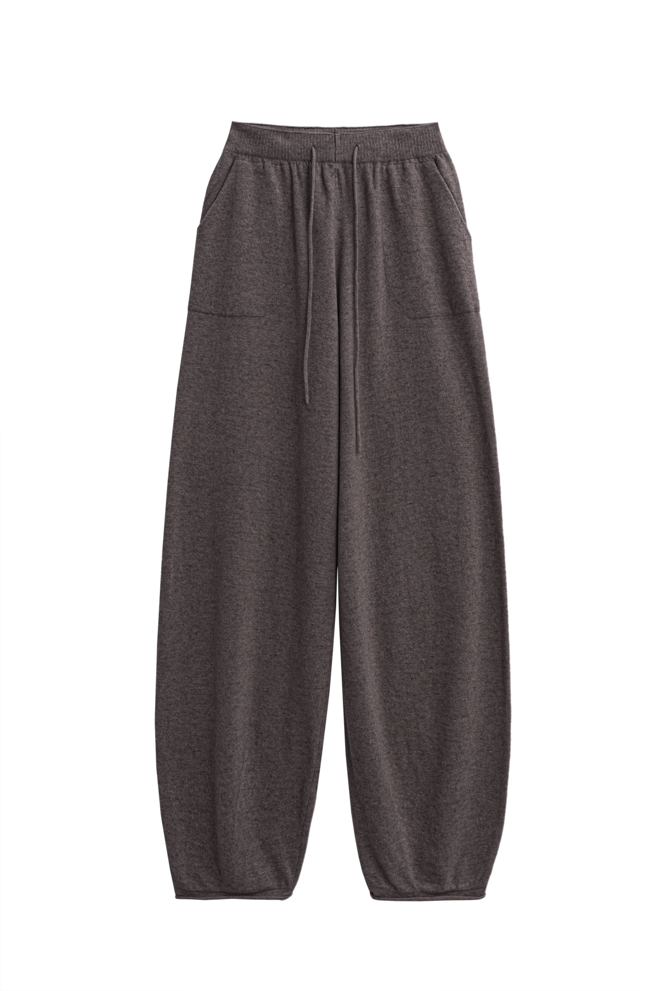 Knitted banana trousers made of cashmere and wool. Model with an elastic waist, complemented by a drawstring, large patch pockets and rolled cuffs.