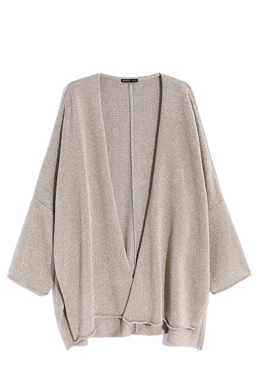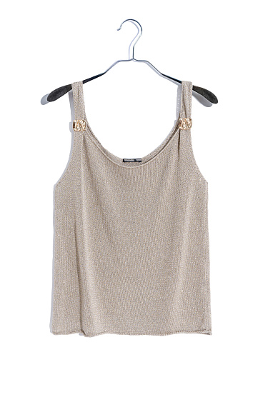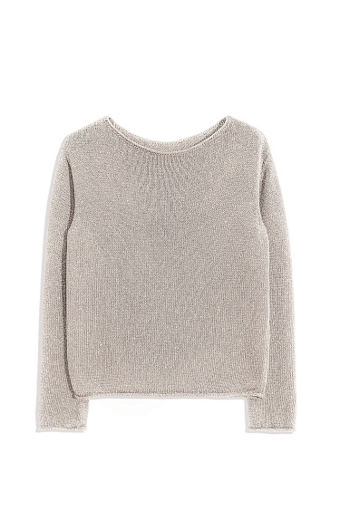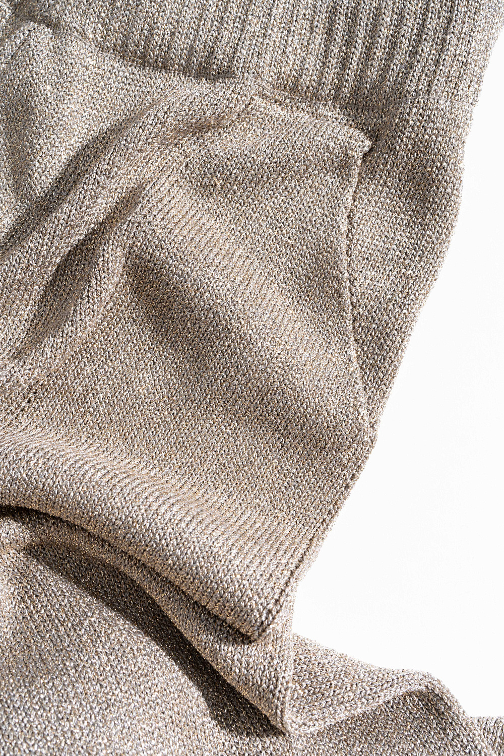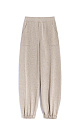 Knitted jogging trousers made of viscose with the addition of lurex. Model with an elastic waistband with a drawstring, side pockets and elasticated cuffs.