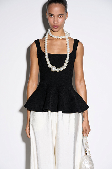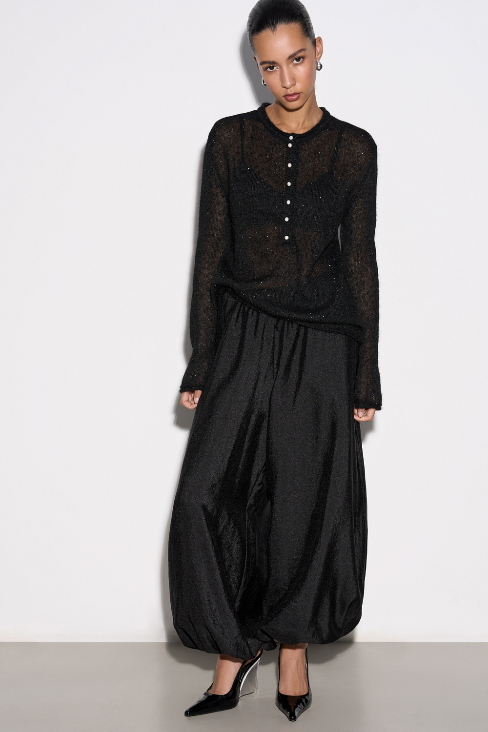 Wide-leg joggers in textured viscose. Loose silhouette model with elastic waistband.