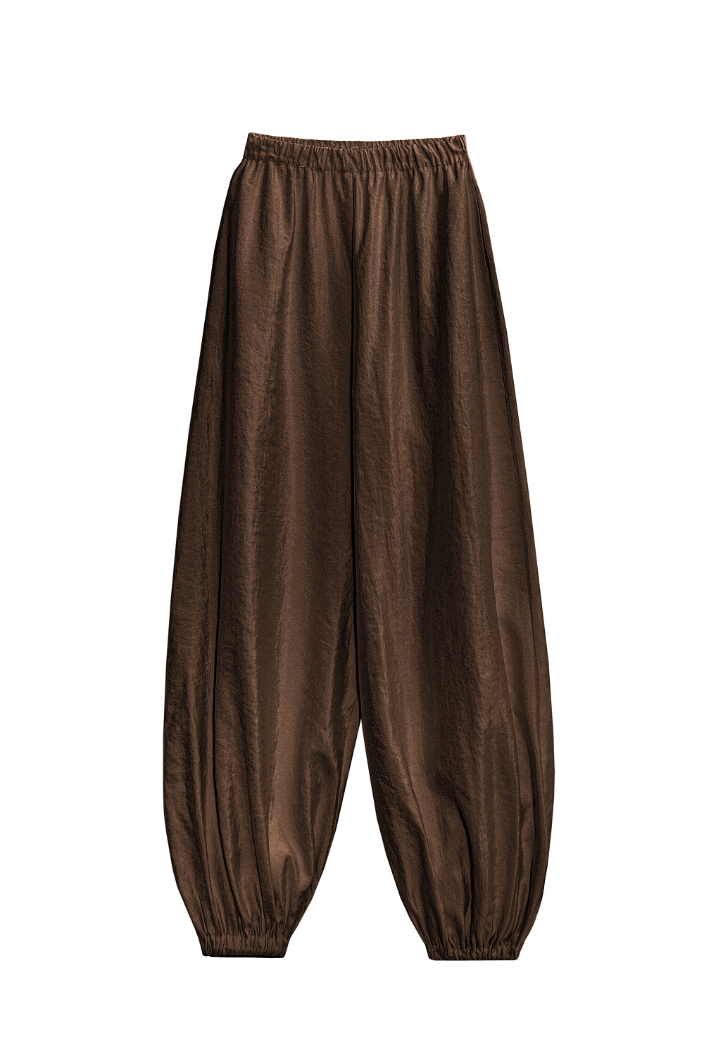 Wide-leg joggers in textured viscose. Loose silhouette model with elastic waistband.