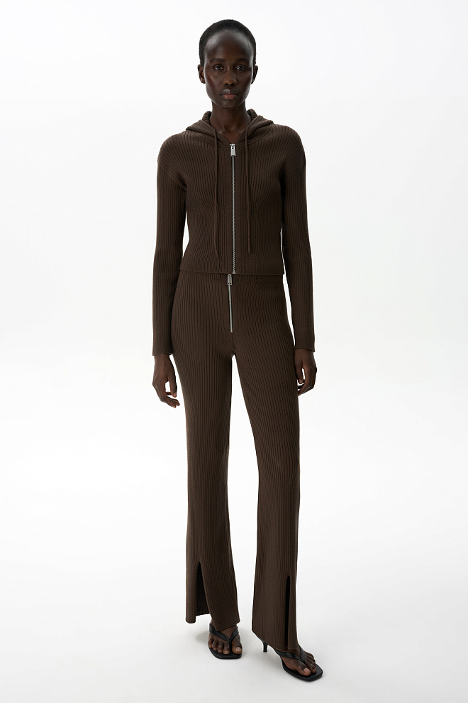 Front-slit rib knit trousers