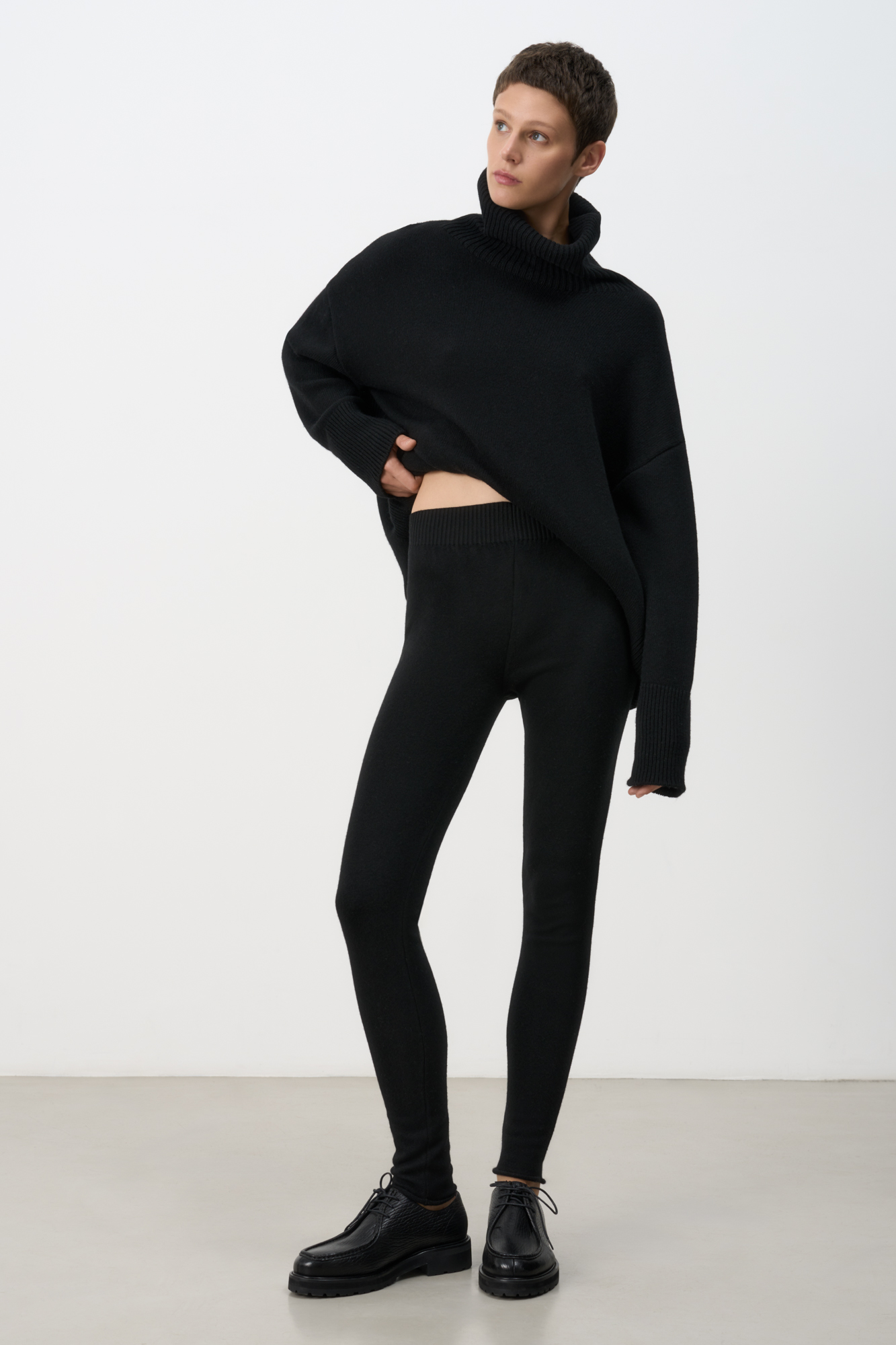 Wool and cashmere knitted leggings with elastic ribbed waistband.