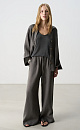 Wide trousers made of 100% linen. The model has a loose straight cut with slit pockets on the sides. The product is made with a belt with a narrow elastic band, complemented by a drawstring.