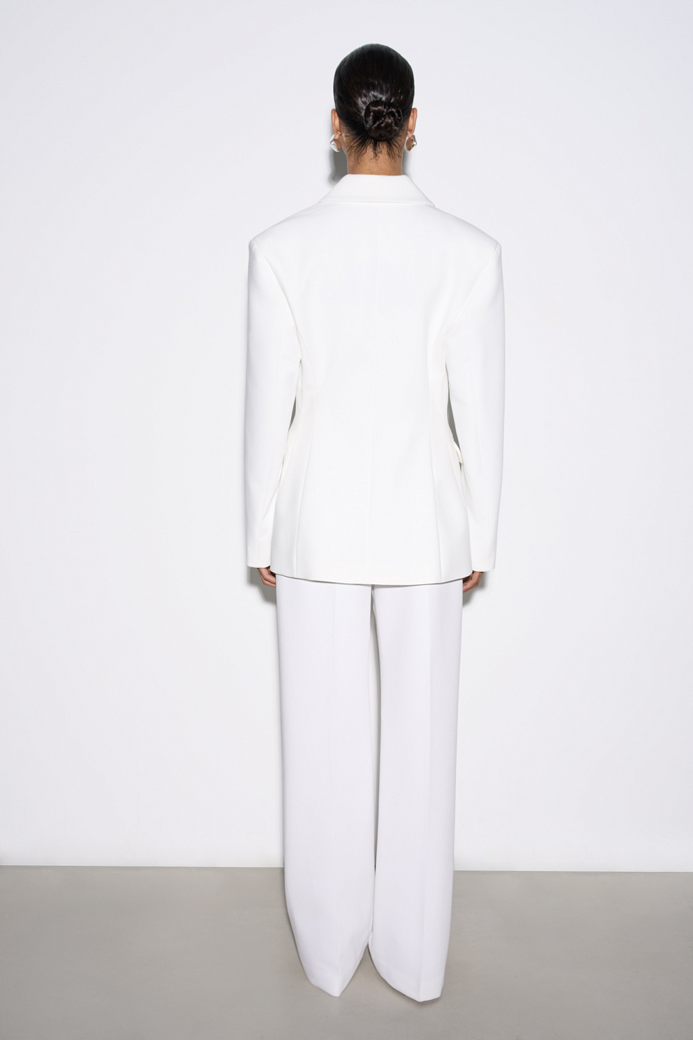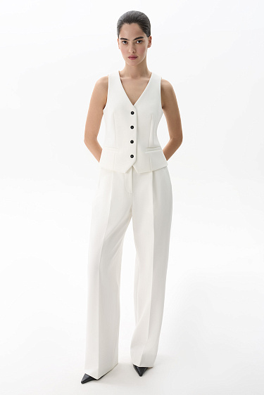Classic trousers made of polyviscose. Straight cut model with arrows. Button and zip fastening. Belt loops on the waistband. The product is lined.