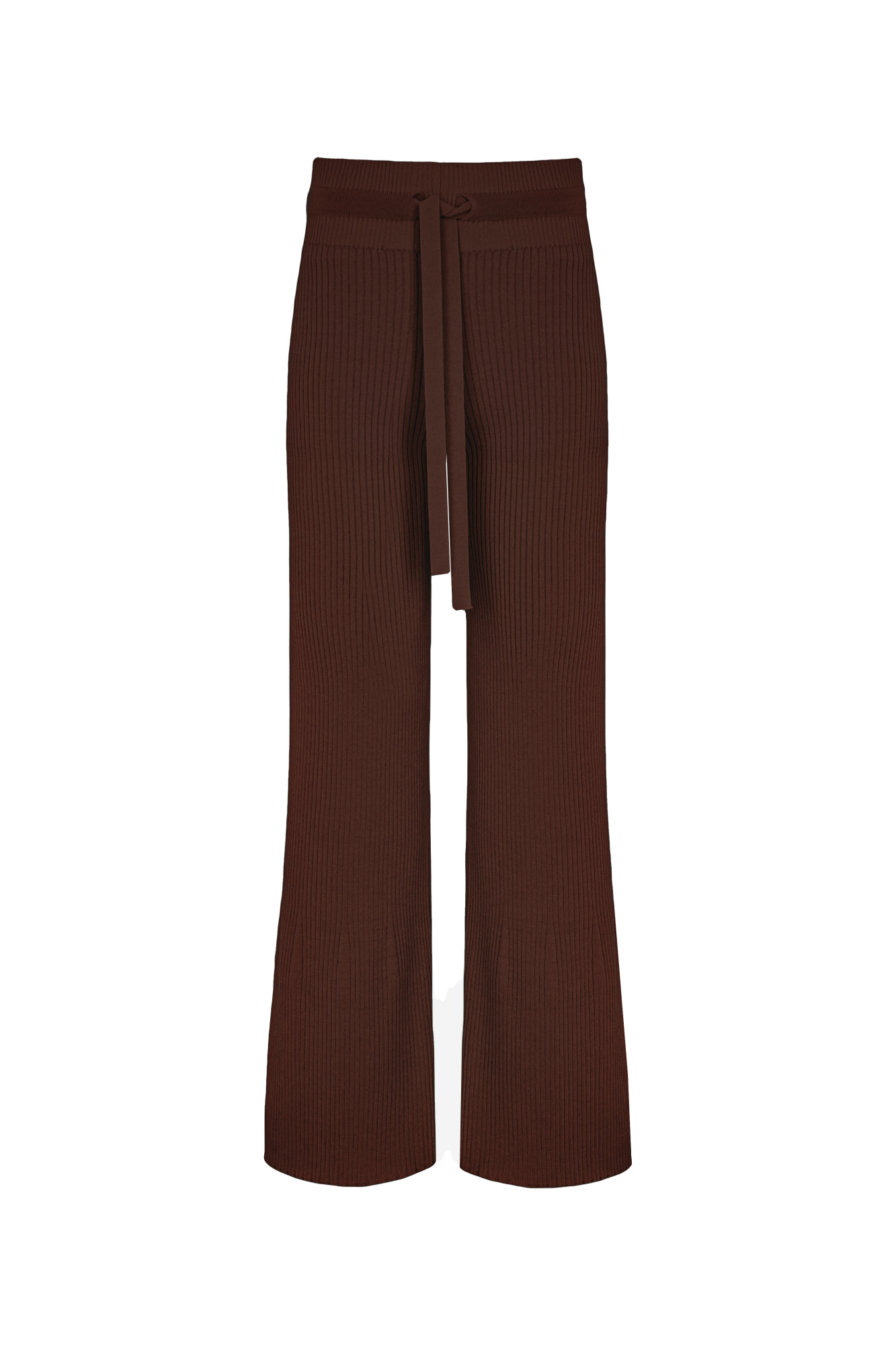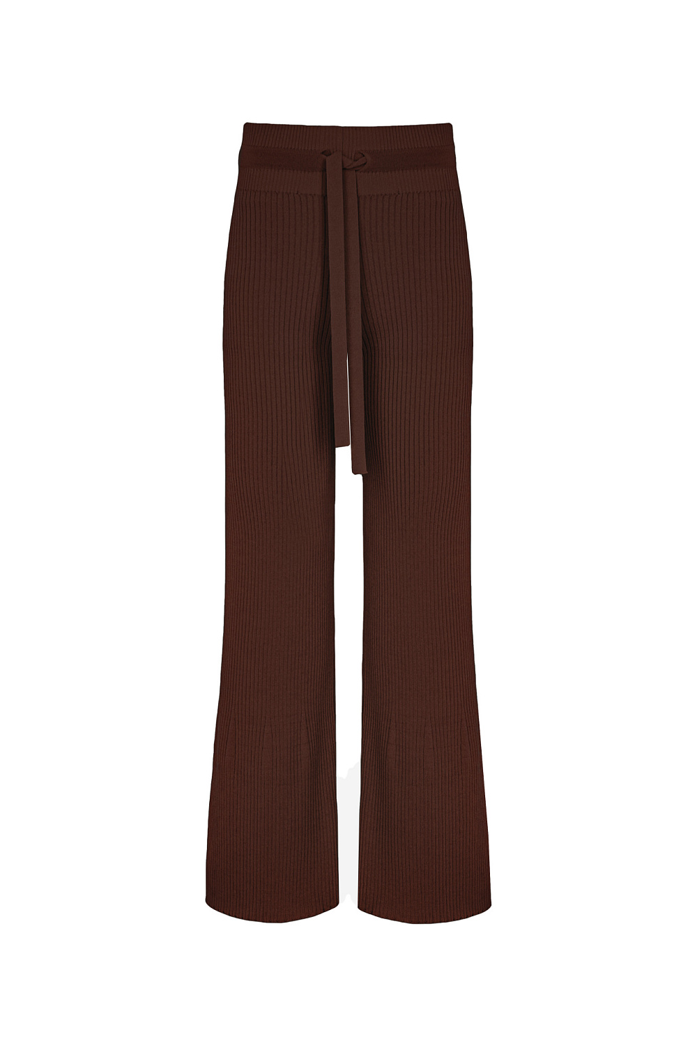 Ribbed knitted flared trousers with slits at the hem, high waist, drawstring waistband.