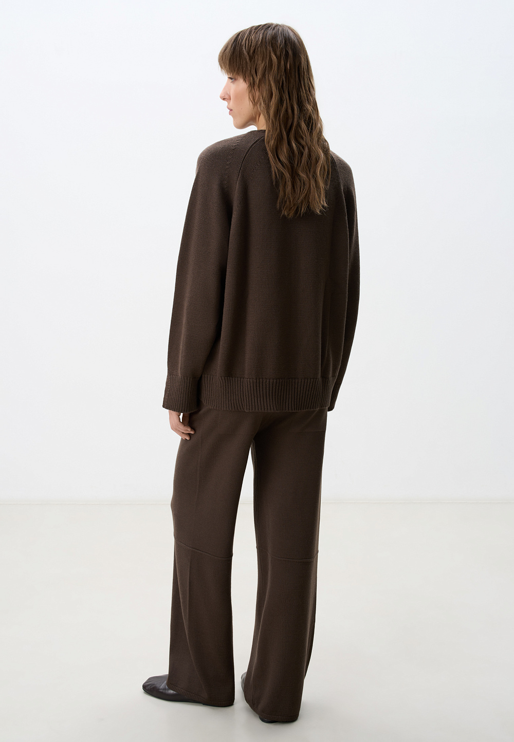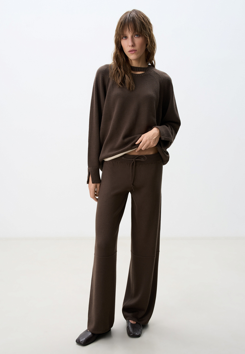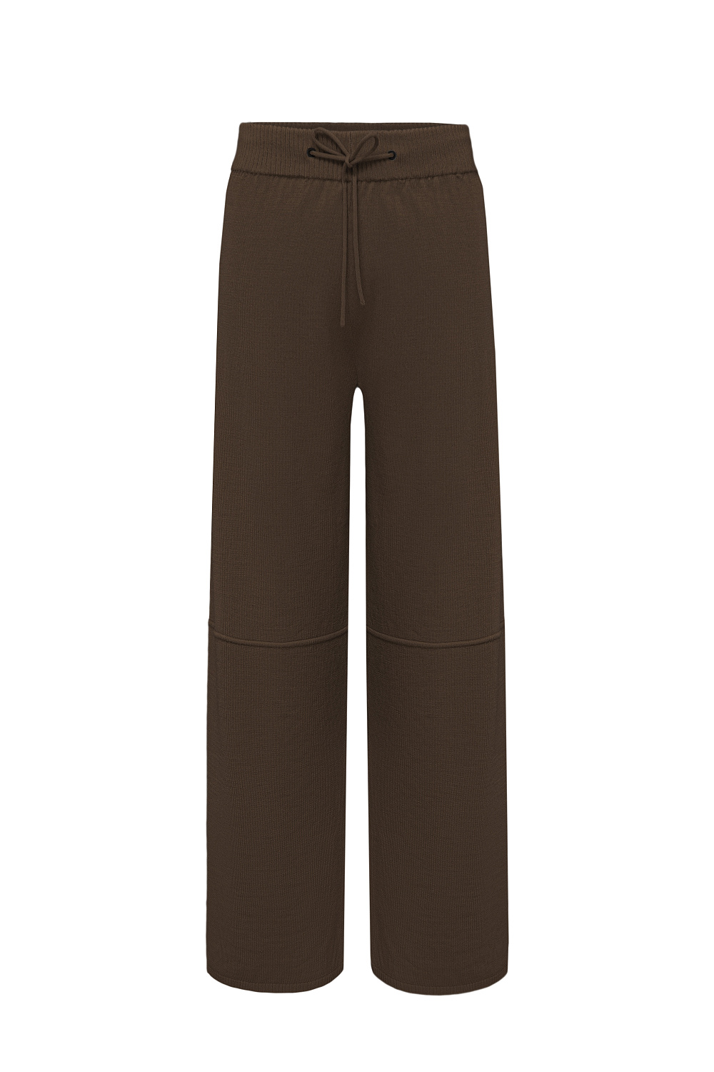 Knit wool blend trousers. Mid rise relaxed silhouette, side and back pockets. Elastic ribbed waistband with drawstring.