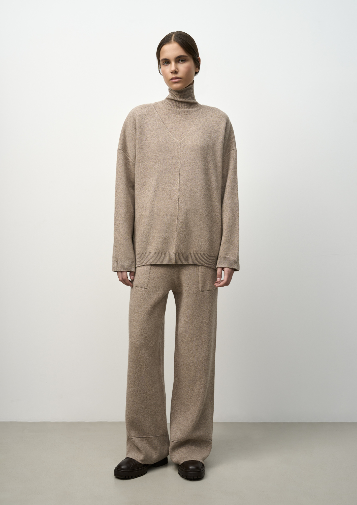Straight-fit knitted trousers in a wool and cashmere blend. Patch pockets and an elastic ribbed waistband.