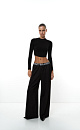 Wide-leg trousers in polyviscose fabric with creases. Loose fit design with mid rise. Elastic branded waistband and side pockets.