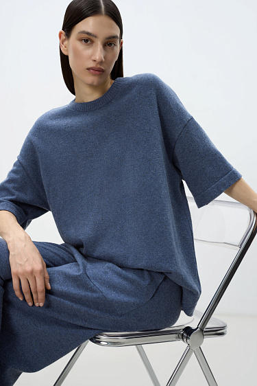 Knitted cashmere and wool trousers. Relaxed fit with patch pockets and an elastic waistband with a ribbed drawstring.