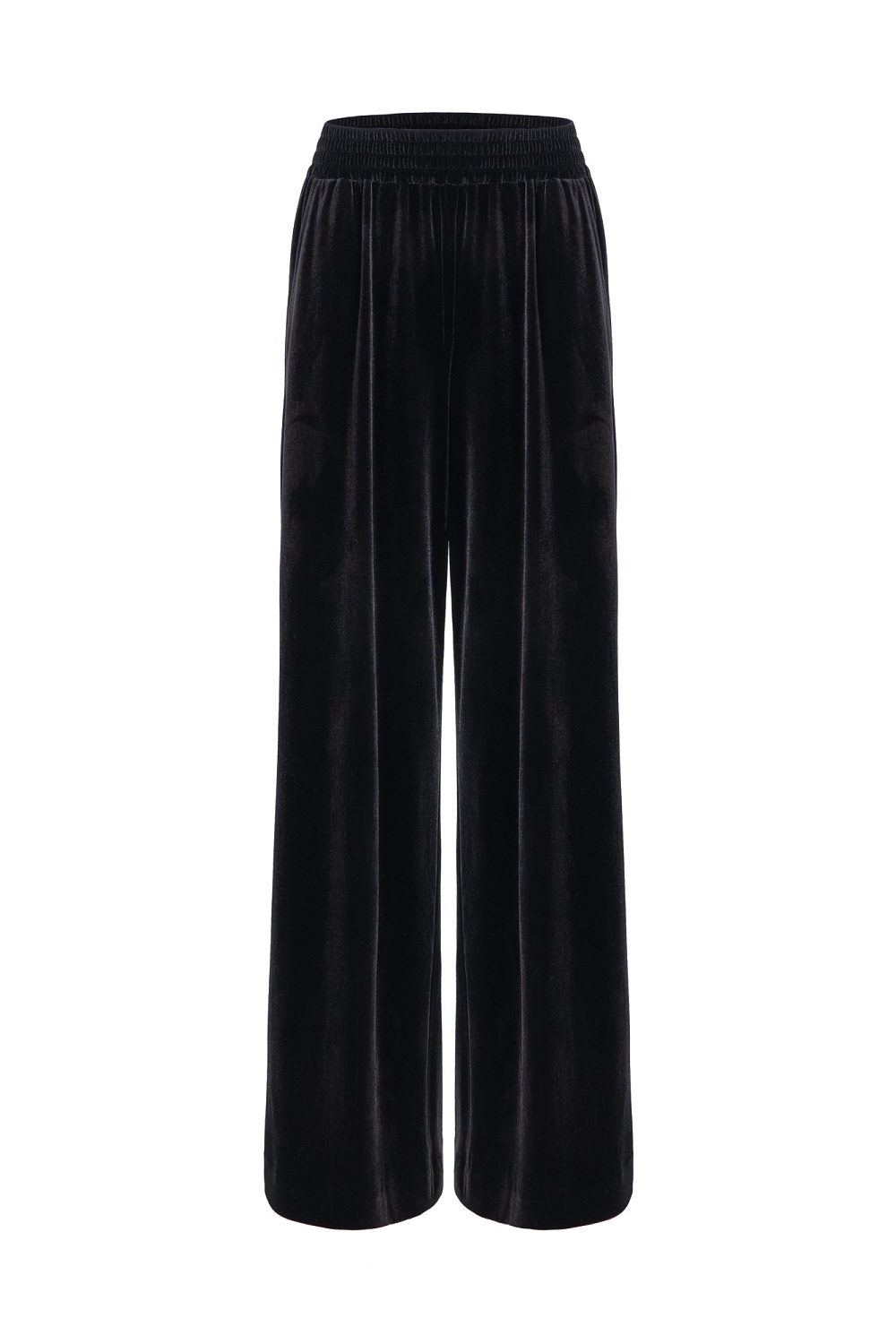Straight-fit velvet trousers, made in linen style, with an elastic waistband. A velvet bomber jacket will be a great addition to complete your look.
