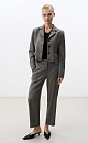 Striped wool trousers. The model has a straight fit, mid-rise, with side and back pockets. Imitation of protruding lining at the bottom of the product. Zip and button closure. You can complement the look with a jacket in the same style.